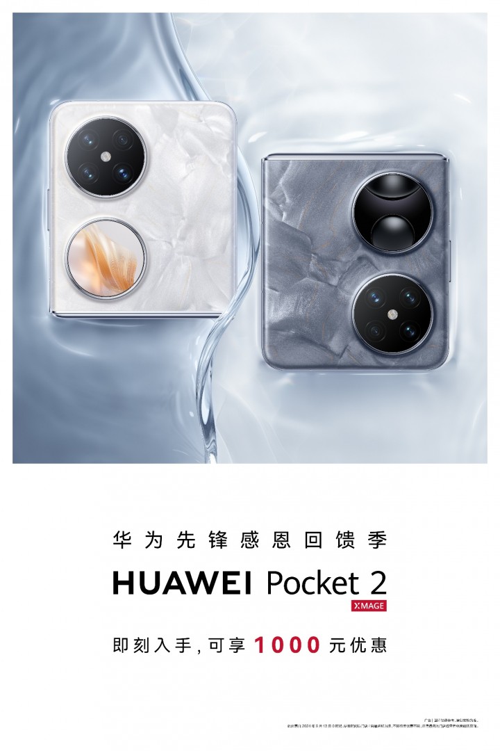 【TechWeb】近日,华为先锋感恩回馈季正式开启!本次活动覆盖华为旗下多款正在热销的折叠屏手机,比如作为发布之日起便在竖折折叠屏市场中占据强势地位的华为Pocket 2,是专门面向爱好时尚纤巧的小折叠用户的一款专属旗舰,凭借小巧精悍的机身设计,多方全能的综合体验,华为Pocket 2在上市后半年一直拥有不错的热度。9月13日0点起,华为先锋感恩回馈季再度带来超值礼遇,购买华为Pocket 2可享1000元优惠!