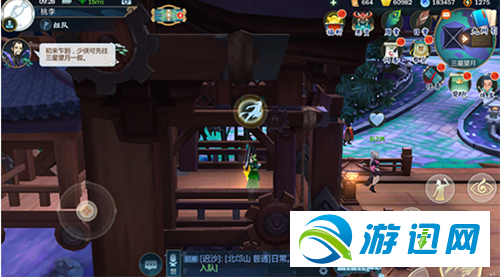 目前在万花这个地图上总共有两个东方宇轩,在酒馆的那个是无法进行互动的,真正的东方宇轩是在万花的三星望月3楼,首先是需要玩家乘坐电梯,在如图所示的左边位置。