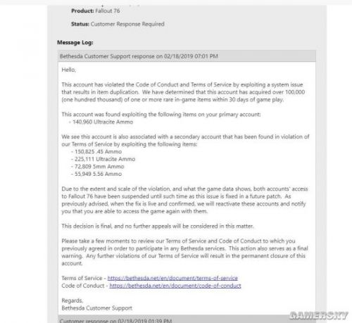 《辐射76》900小时玩家账号被封 竟因持有弹药太多快报