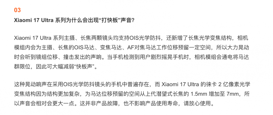 小米17 Ultra系列为什么会出现“打快板”声音?官方回应快讯
