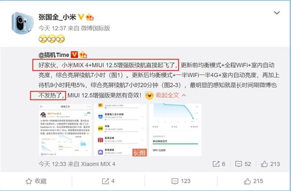 小米MIX 4更新MIUI 12.5增强版:续航起飞 长时间刷微博也不热快报