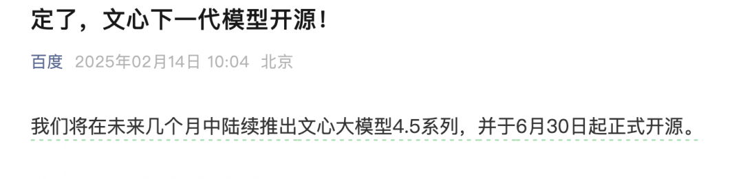 【TechWeb】2月14日消息,百度官方消息显示,百度将在未来几个月中陆续推出文心大模型4.5系列,并于6月30日起正式开源。