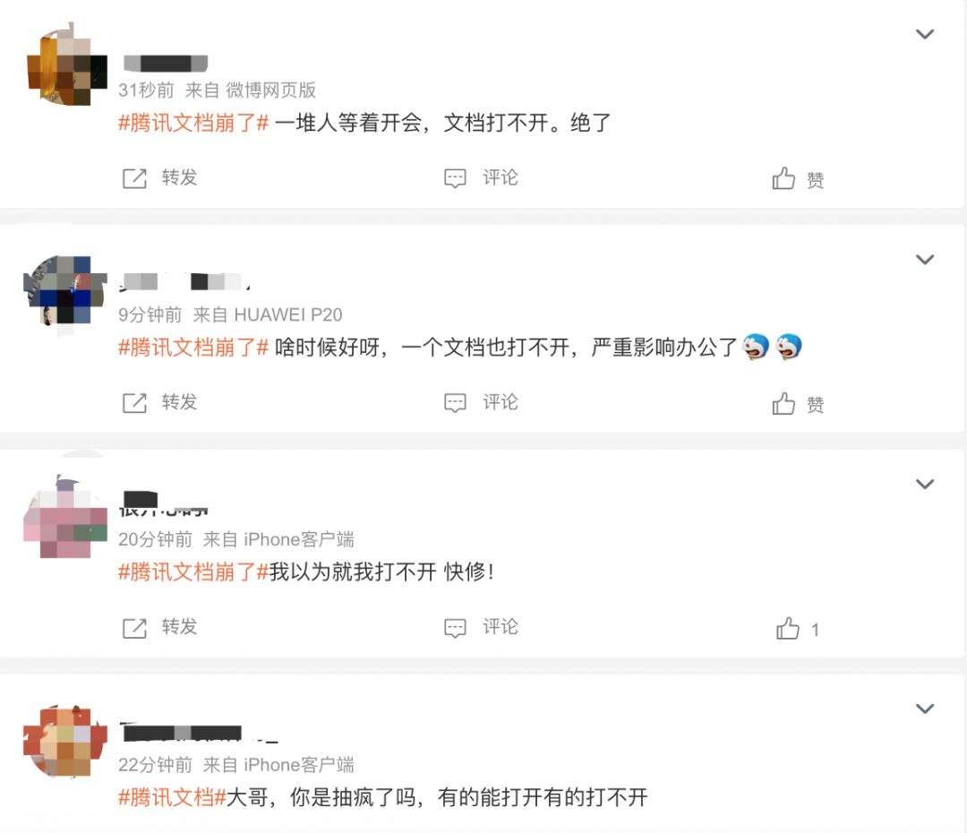 不少网友在社交平台留言称,“崩溃了,一直显示网络不稳定打不开… ”“一堆人等着开会,文档打不开。绝了 ”“严重影响办公了”“我以为就我打不开,快修! ”……