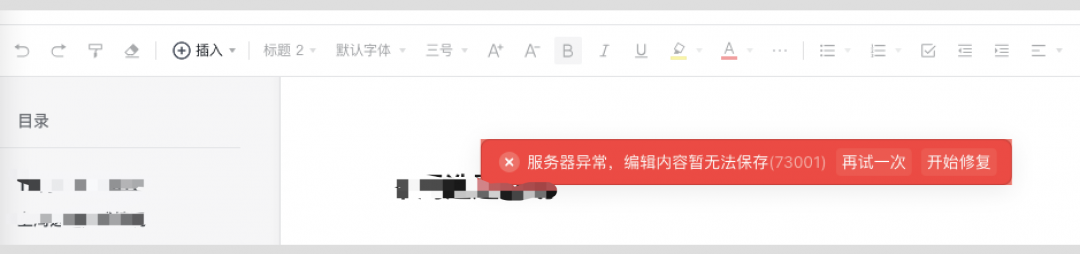 打开腾讯文档网页端,会显示“服务器异常,编辑内容暂无法保存”。还有的无法打开页面,一直显示“访问已超时,请稍后再试”。