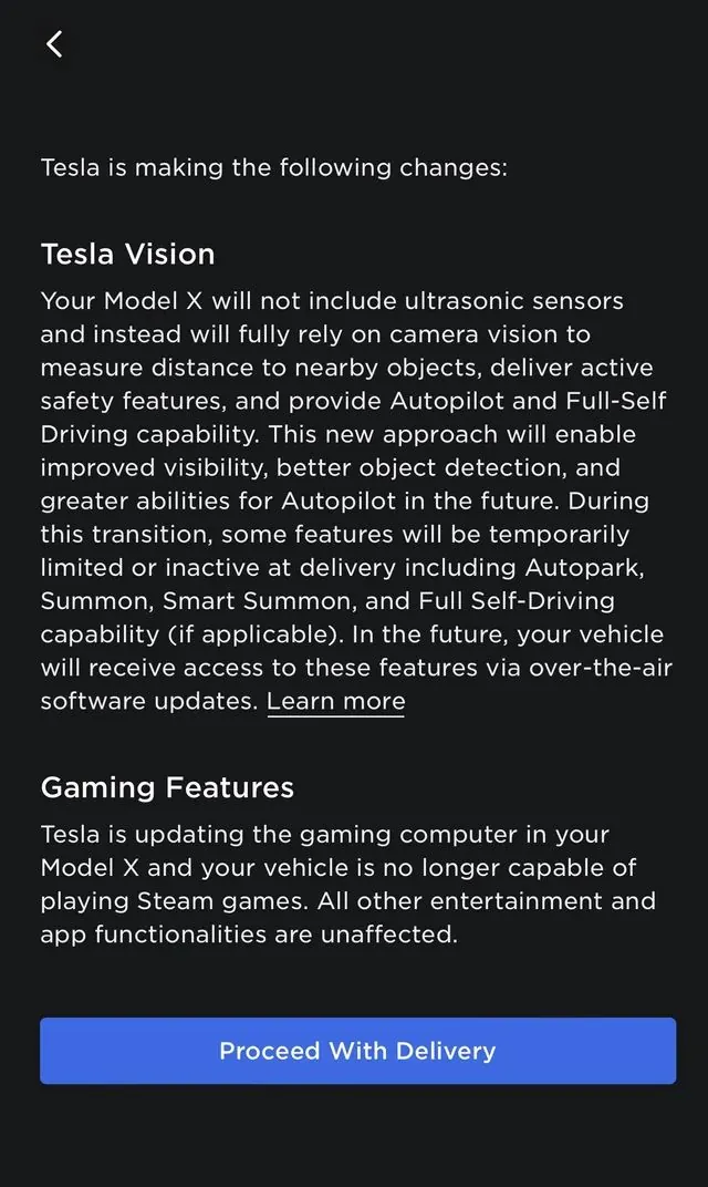 IT之家翻译特斯拉公告内容如下:“特斯拉正在更新您 Model X 的游戏电脑,您的车辆将无法再玩 Steam 游戏,其他所有娱乐和应用程序功能不受影响”。