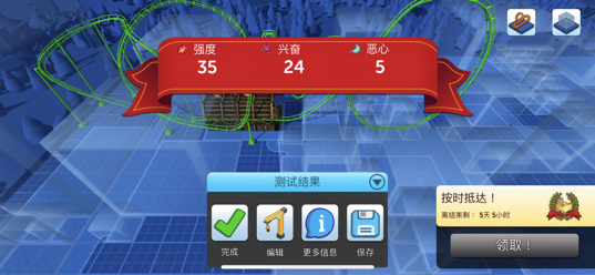 游戏中的过山车建设玩法十分自由,我们可以根据自己的创意去设计轨道的长度、高低,弯曲等等,从而改变过山车的一些属性,比如恶心度、兴奋度等。而除了基本的DIY设计,此外,我们还可以通过收集一些特定的过山车回环、螺旋等组件去让我们的过山车变得更加刺激。