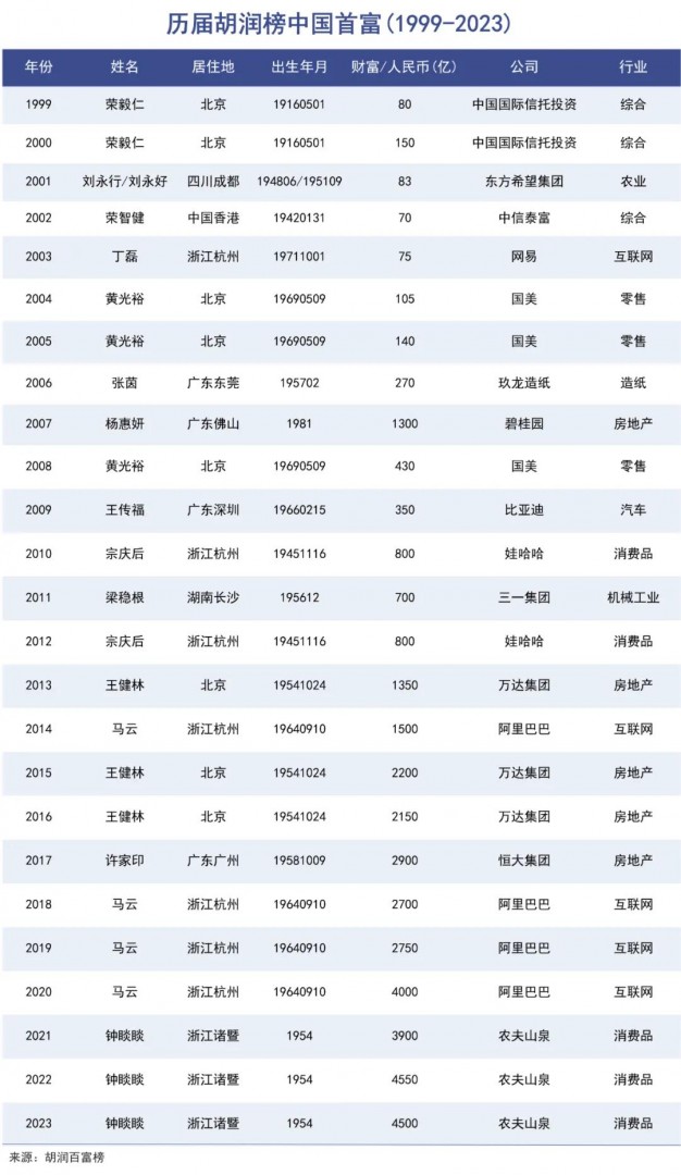 全球范围看,液体饮料都可以称得上是“富豪制造机“。尤其是中国瓶装水市场先后成就了宗庆后、钟睒睒两位首富级企业家。自2020年农夫山泉上市后,钟睒睒连续三年蝉联了首富之位。