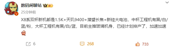 据知名数码博主@数码闲聊站 最新发布的信息显示,与此前曝光的消息基本一致,全新的OPPO Find X8系列依旧将包含三款机型,先期将推出OPPO Find X8和OPPO Find X8 Pro两个版本,二者均将配备1.5K屏幕,搭载天玑9400芯片,并配备潜望长焦镜头以及采用新硅技术的大容量电池。在外观设计上,该系列的标准版工程机提供有黑、白、蓝、粉四种配色,而Pro版则包含黑、白、蓝三色。并称目前将主推玻璃机身,已进入排产阶段。毕竟相比素皮材质,清爽的玻璃机身还是更受大多数用户的欢迎。