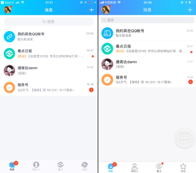 ▲ 消息页面对比,左为 8.0.0 版,右为 7.9.9 版