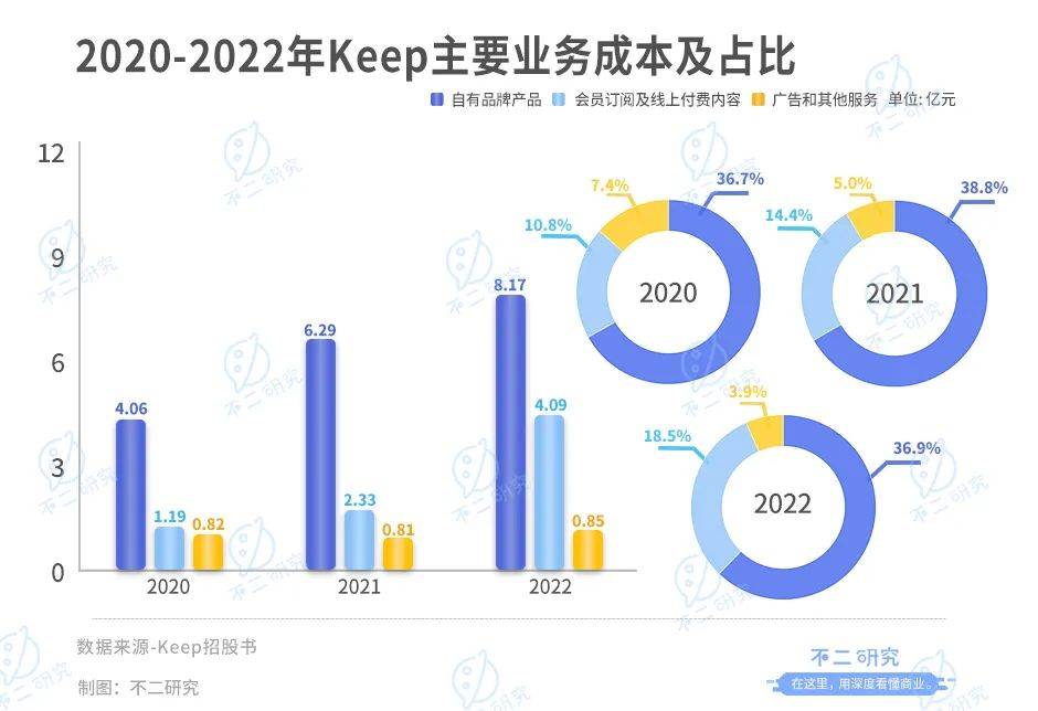「不二研究」认为,从收入及成本占比来看,Keep押注自有品牌产品,但随之而来的是超七成的销售成本,使其不堪重负。