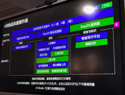 百度大脑4月新品和重要升级(蓝色为新品,绿色为升级)