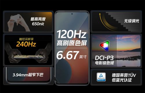 iQOO Z5采用6.67英寸120Hz高刷原色屏,屏幕亮度高达480nits,峰值亮度可达650nits,同时还支持96% NTSC色域、DCI-P3广色域和HDR10,显示屏支持全局无级调光及全程DC调光,可平稳调节亮度并有效降低频闪,缓解用户眼疲劳。同时,iQOO Z5更是通过了德国莱茵TÜV 低蓝光认证,可有效降低蓝光。