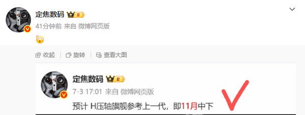 【TechWeb】6月11日,华为在年度新品发布会上正式推出了Pura 80系列手机。作为华为旗舰产品线的最新成员,这一系列以“先锋影像美学”为核心,重新定义了移动影像的可能性,一经亮相便受到了外界的广泛关注。而在不久前,华为另一当家系列——Mate系列的迭代新旗舰也迎来曝光,尤其影像表现备受瞩目。现在有最新消息,近日有数码博主进一步透露称,该系列机型有望在11月中下旬亮相。