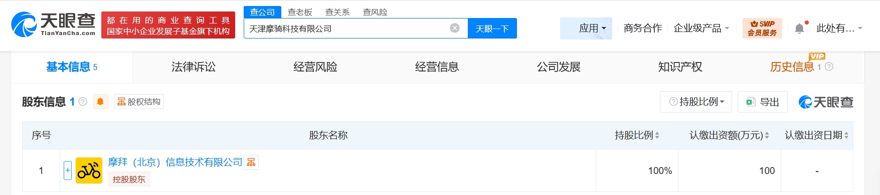 摩拜在天津成立摩骑科技公司 注册资本100万观点