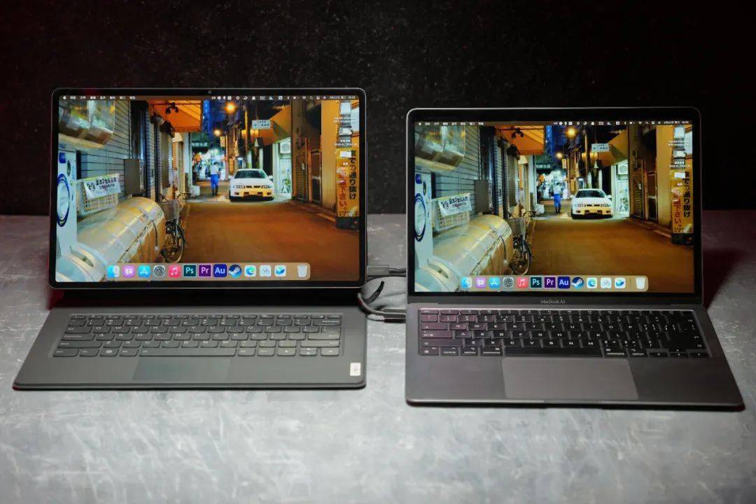 我试了试能不能把它和 MacBook Air 连接,结果雷雳 4 数据线确实给力,Y900 很快就显示了 MacBook Air 的画面,显示效果甚至更好。