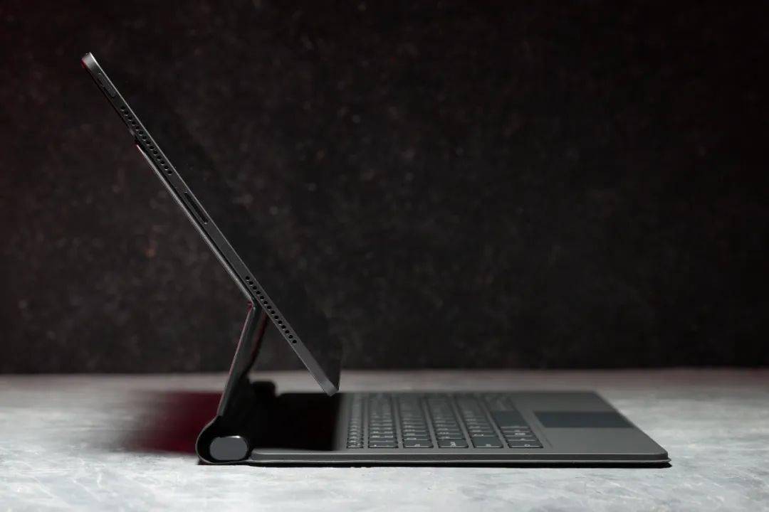 还有与之配套的 “ 妙控键盘 ” 体验也还可以,做到了和 iPad Pro 类似的悬浮效果,磁吸牢靠很扎实。