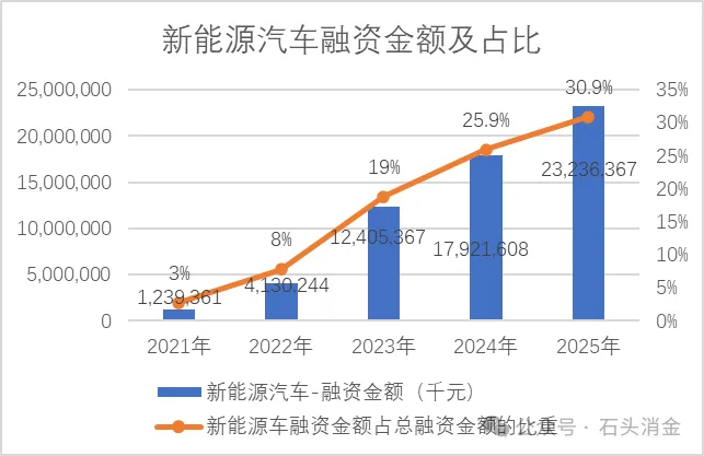 受益于新能源汽车市场整体高速增长,易鑫新能源车融资业务发展迅速。融资金额从2021年的12.4亿元增至2025年的232.36亿元,占比由3%升至30.9%,连续四年攀升。