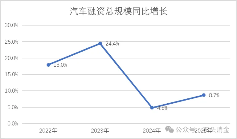 然而,2024年及2025年的实际业务并未沿此路径发展。新车融资交易数量从2023年的39.9万辆降至2024年的37.6万辆,2025年进一步下滑至30.7万笔,同比下降19%;新车融资金额也从387亿元降至331亿元,同比减少15%。相反,二手车融资业务持续扩张,交易量由27.9万辆增至35万辆,2025年达53.7万辆。这一趋势与2023年报中的风险收缩战略明显背离。