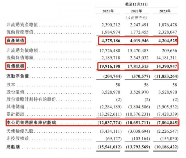 招股书显示,2023 年,喜马拉雅总资产42亿,总负债144 亿。不止去年,2021-2022 年,喜马拉雅的净资产分别-155 亿、-138 亿。可见,喜马拉雅的负债规模一直处于高位。