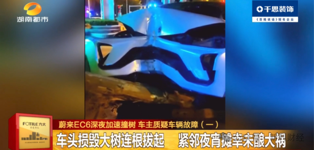 2025年8月20日,湖南广电都市频道报道,长沙一位车主陈先生驾驶蔚来EC6夜间行驶时,车辆在未操作油门或刹车的情况下突然自动加速并失控,撞向路边大树。事故导致车辆严重损毁,幸未造成人员伤亡。陈先生质疑事故与车辆本身质量有关。