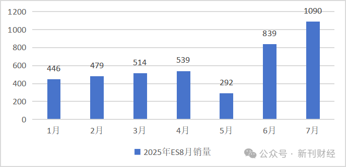 此外,蔚来ES8的市场表现相对平淡。2024年ES8全年累计销量为9,188辆,约为ES6销量的八分之一。2025年上半年,ES8累计销量为3,109辆,月均不足千辆,其中5月销量仅为292辆,为全年最低,7月回升至1,090辆。