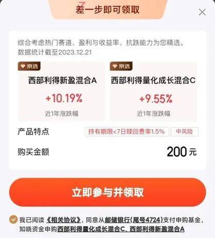 据公开信息,“白拿”活动下线后,京东金融又推出了换汤不换药的“白兑”活动——投100元体验基金送十几元全品类立减券,依然直指基金代销业务。