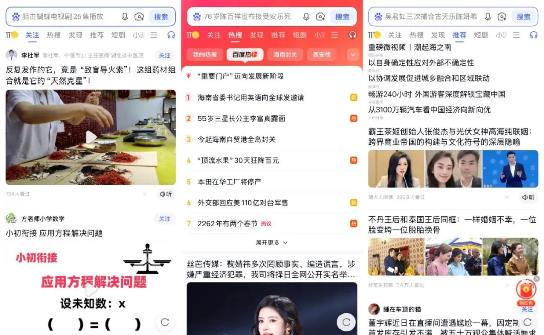 打开百度APP,首页被“关注”“热搜”“推荐”等频道层层包裹,核心搜索框被挤到页面顶端的角落——新手妈妈本想查询“婴儿低烧处理”,却被信息流带偏方向;备考学生搜索“牛顿三大定律”,结果前几条全是培训机构的推广,有用信息被淹没在杂乱的链接中。