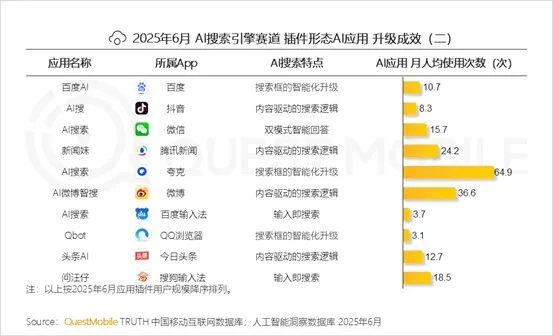 QuestMobile数据显示,夸克AI搜索的渗透率和使用率分别达到56.6%和56%,而传统搜索引擎仅为42%和9.6%,使用率差距高达5倍。