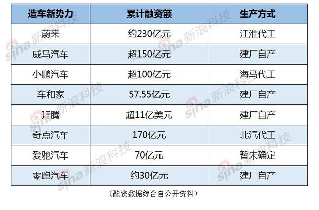 新浪科技整理发现,蔚来通过多轮融资以及上市公开募资已经率先达到了200亿元“及格线”,威马和小鹏也完成了超过100亿元融资,车和家完成了融资57.55亿元,拜腾、爱驰、零跑等也都完成了数十亿融资。