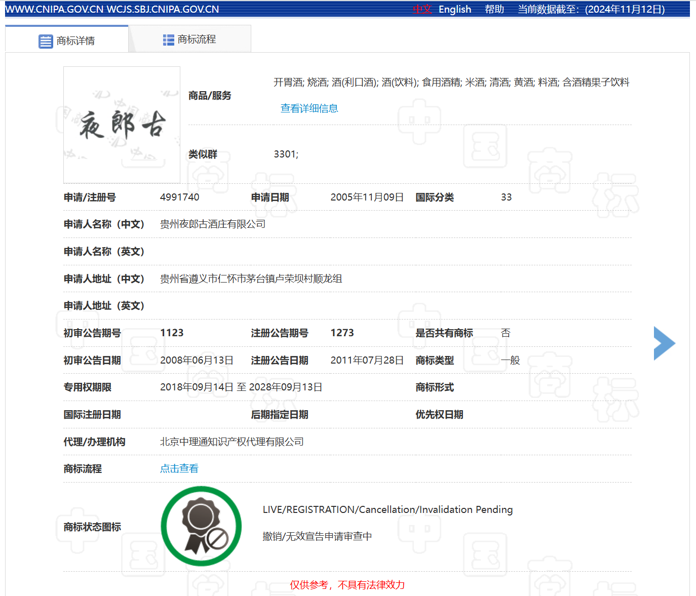 夜郎古方面认为,郎酒公司曾针对其最早注册的第4991740号“夜郎古”商标向国家商标局提出异议。2011年,商标局裁定并驳回了郎酒公司的异议,明确指出“夜郎古”商标与“郎”商标不构成近似,同时认为郎酒公司主张夜郎古酒恶意注册其驰名商标的证据不足。此后,郎酒公司未对此裁定提起复审或行政诉讼。