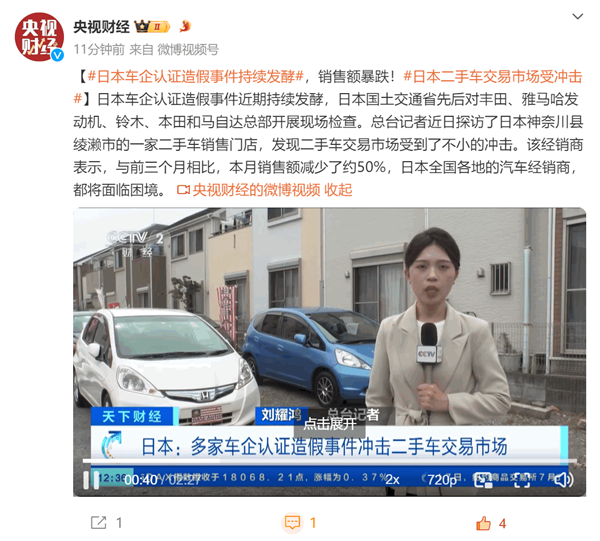 日系车集体造假事件持续发酵:有二手车商家销售额暴跌50%快讯