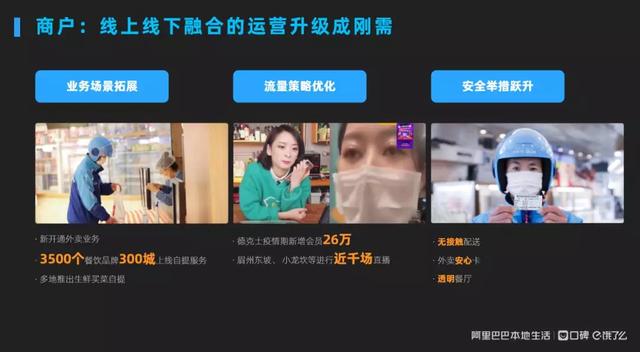 疫情中,一方面是口碑饿了么的数字化准备被充分证明是行之有效且有重要价值的。另一方面,本地生活的广大用户和商户,在加速的上线平台——各种数据。