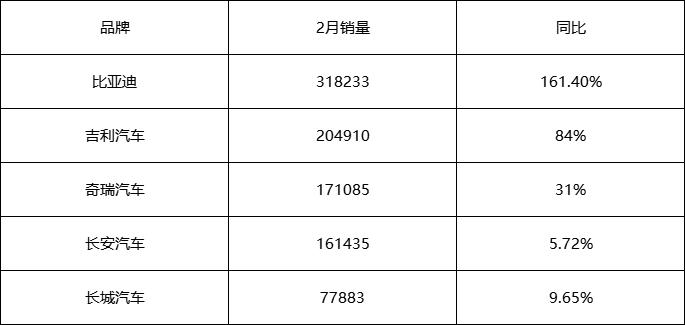与此同时,在品牌整体销量方面,长城汽车同样被远远抛下。根据官方公布的数据显示,2月份比亚迪、吉利超过20万,长安汽车总销量超过16万,旗下的中国品牌车型销量也达到10万以上。长城汽车只有77883辆,与第一梯队阵容是渐行渐远。
