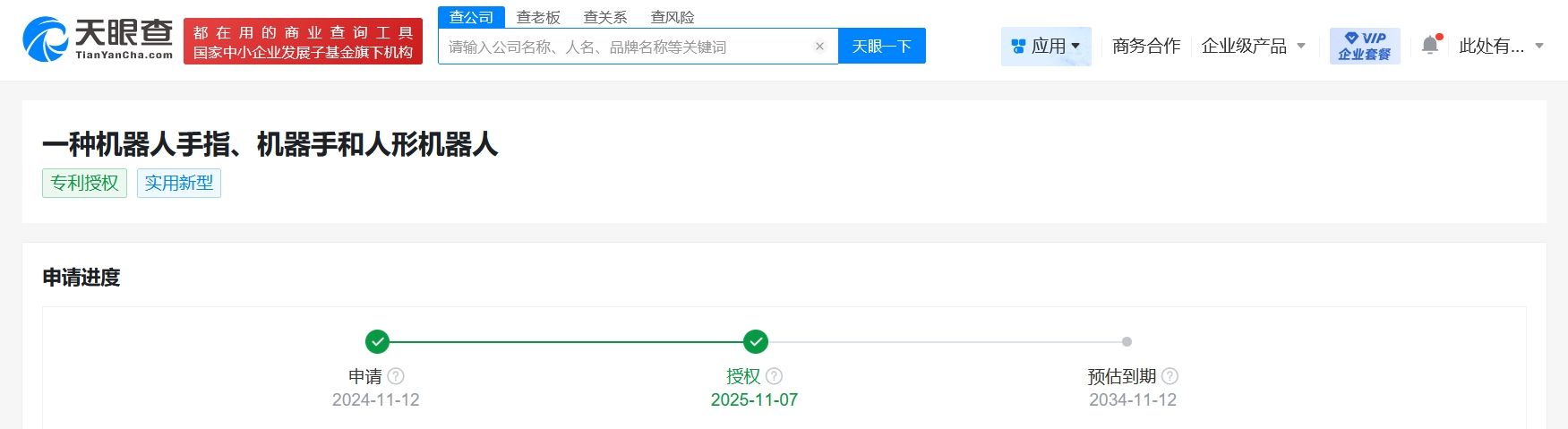 天眼查App显示,近日,宇树科技股份有限公司申请的“一种机器人手指、机器手和人形机器人”专利获授权。