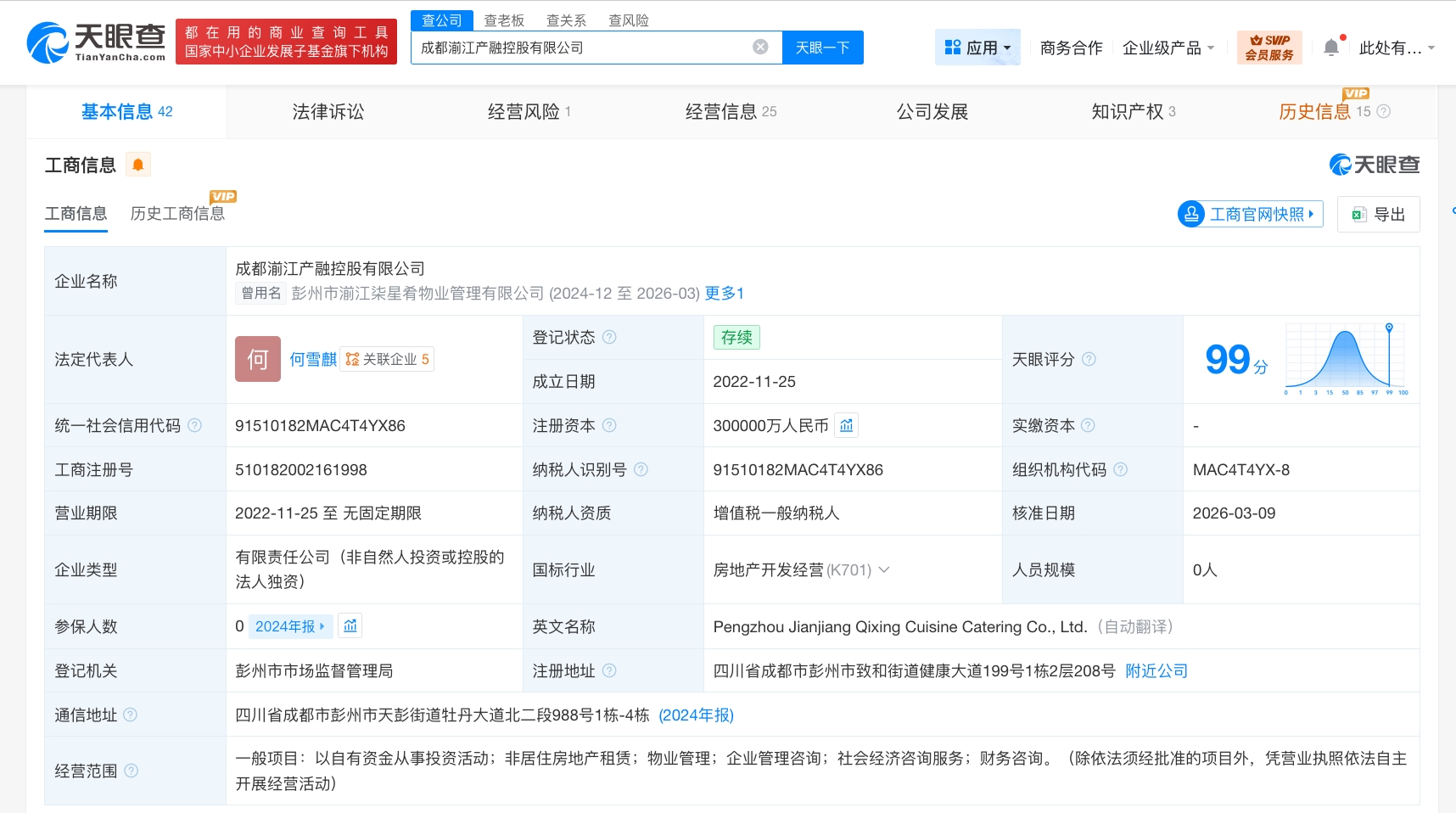该公司成立于2022年11月,法定代表人为何雪麒,经营范围包括以自有资金从事投资活动、非居住房地产租赁、物业管理、企业管理咨询等。
