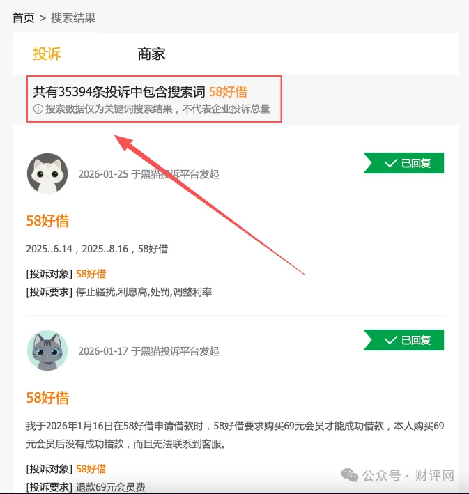 自2025年10月助贷新规实施以来,关于58好借的投诉不降反增,黑猫投诉平台上的相关投诉已累计超过3万条。