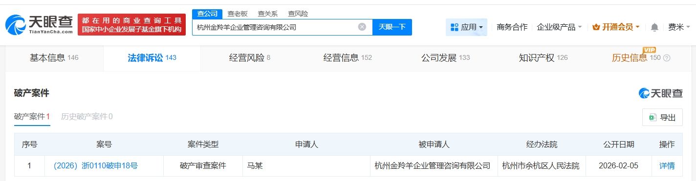 天眼查法律诉讼信息显示,近日,自嗨锅关联公司杭州金羚羊企业管理咨询有限公司新增一则破产审查案件,申请人为马某,经办法院为杭州市余杭区人民法院。