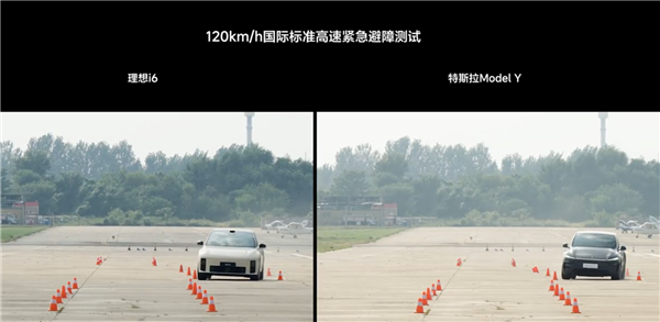 理想汽车产品线负责人李昕旸同步分享了一段理想i6的测试视频,展示了与Model Y的120km/h高速紧急避障测试对比情况。该测试严格遵循国际通用标准,对车辆动态性能提出极高要求,能够全面展现汽车在极限状态下的稳定性。从画面中可见,理想i6在高速紧急避障测试中的车身动态表现丝毫不逊于特斯拉Model Y。