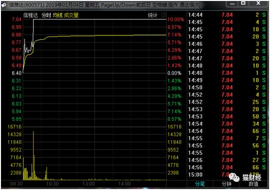 1月4日,信雅达强势上涨,最终以涨停收盘,报收7.04元。