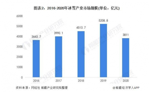 如下图可知,我国冰雪产业市场规模自2015年后逐年增长,在2019年达到5208.8亿元的市场规模,之后的疫情对冰雪产业造成很大影响,2020年缩水到3811亿元。据预测,随着疫情的好转,冬奥会的社会影响力逐年增强,2021年及之后冰雪产业规模将超过2019年,2026年市场规模将会达到8232亿元。