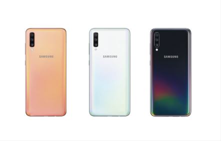 Galaxy A70还配备了三种外观配色,包括今年流行的珊瑚橙,以及镭射黑和珍珠白。值得一提的是,其机身的时尚棱镜效果能够跟随光的方向,反射出眩目的渐变色彩。
