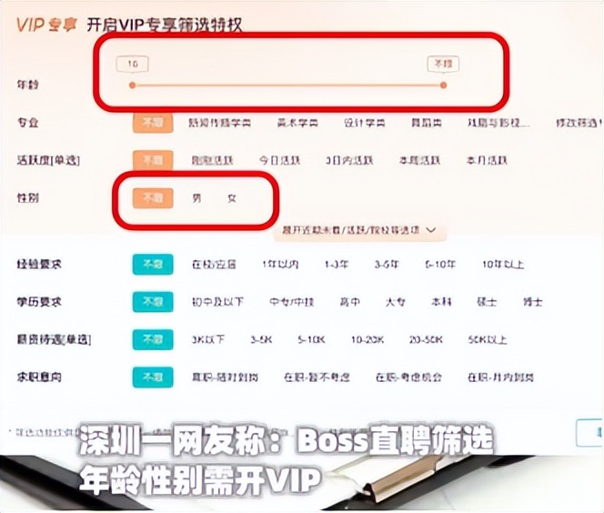 BOSS直聘筛年龄性别都要先开VIP,客服回应称需买VIP权利包,后续是否调整以平台显示为准