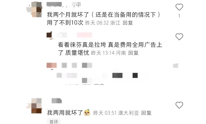 有观点认为,徕芬作为迅速崛起的网红品牌,前期将大量资源投入营销,打造“戴森平替”、“高速护发”等概念,但在核心技术研发和品控管理上可能存在短板,导致质量问题频发。