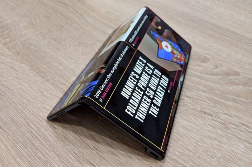 从人体工程学角度来看,展开后的平板电脑非常容易单手操作,其8:7.1的长宽比意味着它仍然有横向和纵向两个方向。在体验过程中记者发现展开后的形状最适合浏览网页,但观看YouTube视频或其他宽屏内容时兼容性就差了。