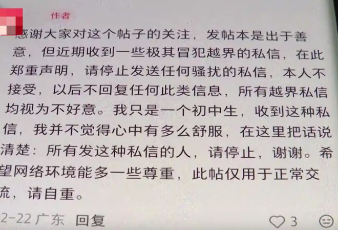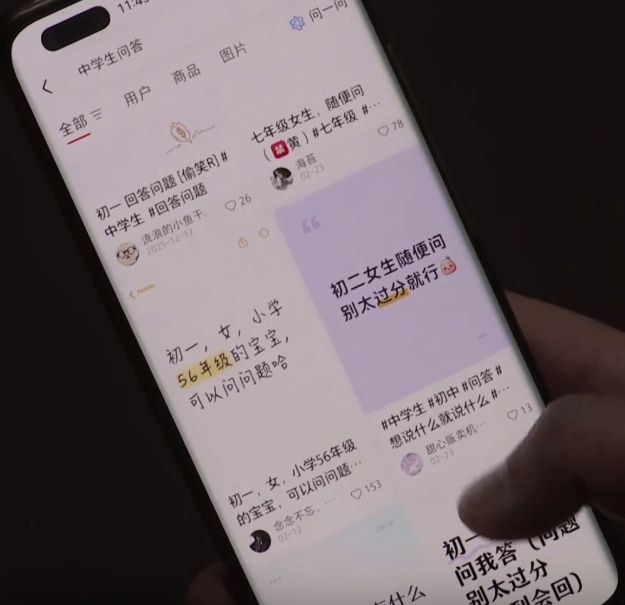 平台上一项名为“你问我答”的互动功能,尤其受未成年学生欢迎。然而,在一些标示着“初中女生随便问”的帖子下,评论区充斥着大量针对未成年女生的不当提问,内容涉及生理期、内衣穿搭,甚至索要身体部位照片等。一名自称初一的女生表示,发帖本意是为了交友,却收到大量不堪入目的骚扰私信。
