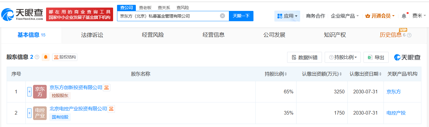 京东方、电控产投成立私募基金管理公司 注册资本5000万观点