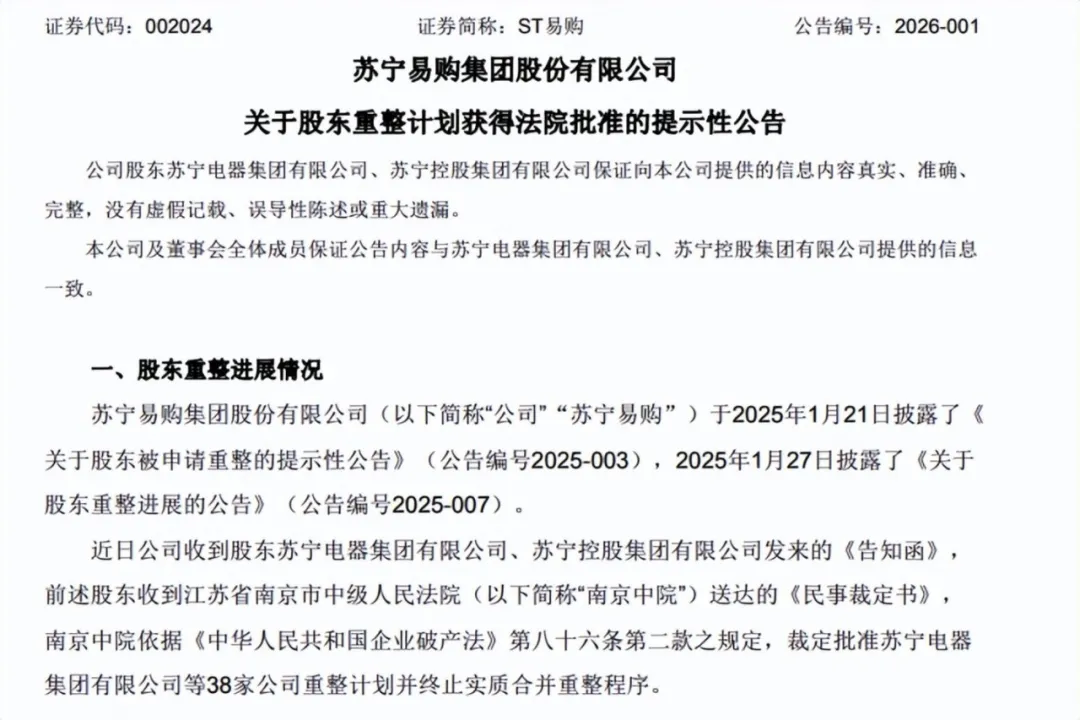 2026年3月,苏宁的结局尘埃落定:38家企业重整,2387亿债务,张近东资产清零。