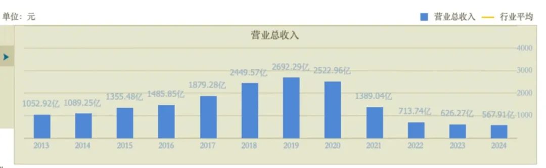 2019年,27亿元收购万达百货,48亿元收购家乐福中国80%股权。家乐福中国的营收从2020年的255.74亿元,骤降至2024年的6.48亿元,跌幅达97.5%。