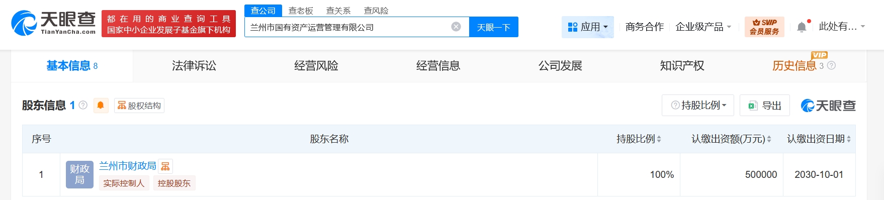 兰州市国有资产运营管理公司登记成立 注册资本50亿观点