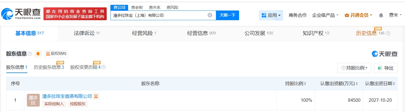 天眼查App显示,近日,潘多拉珠宝(上海)有限公司发生工商变更,注册资本由1.2亿人民币增至8.45亿人民币,增幅约604%。